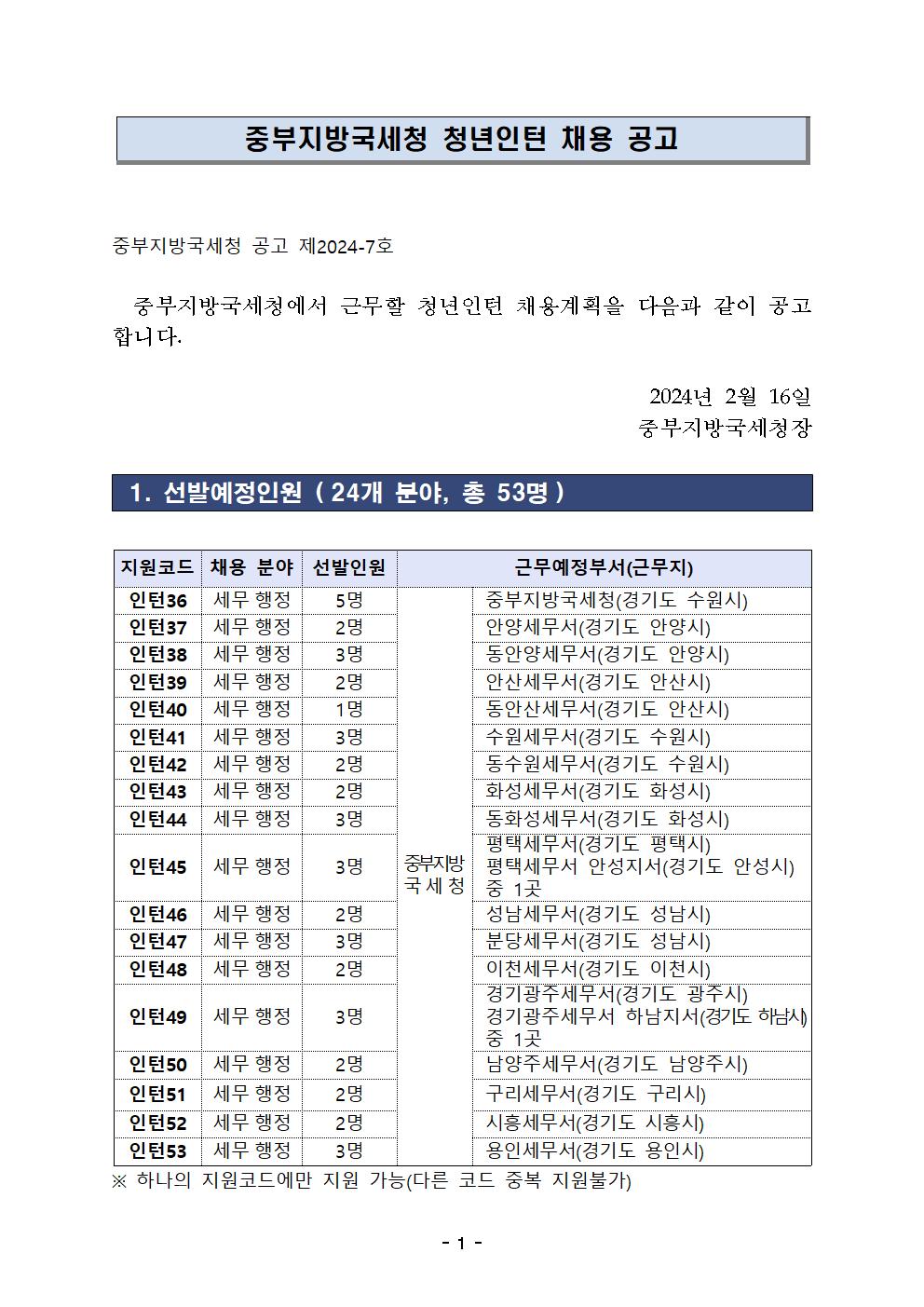 24년 청년인턴 채용공고(중부지방국세청).hwp