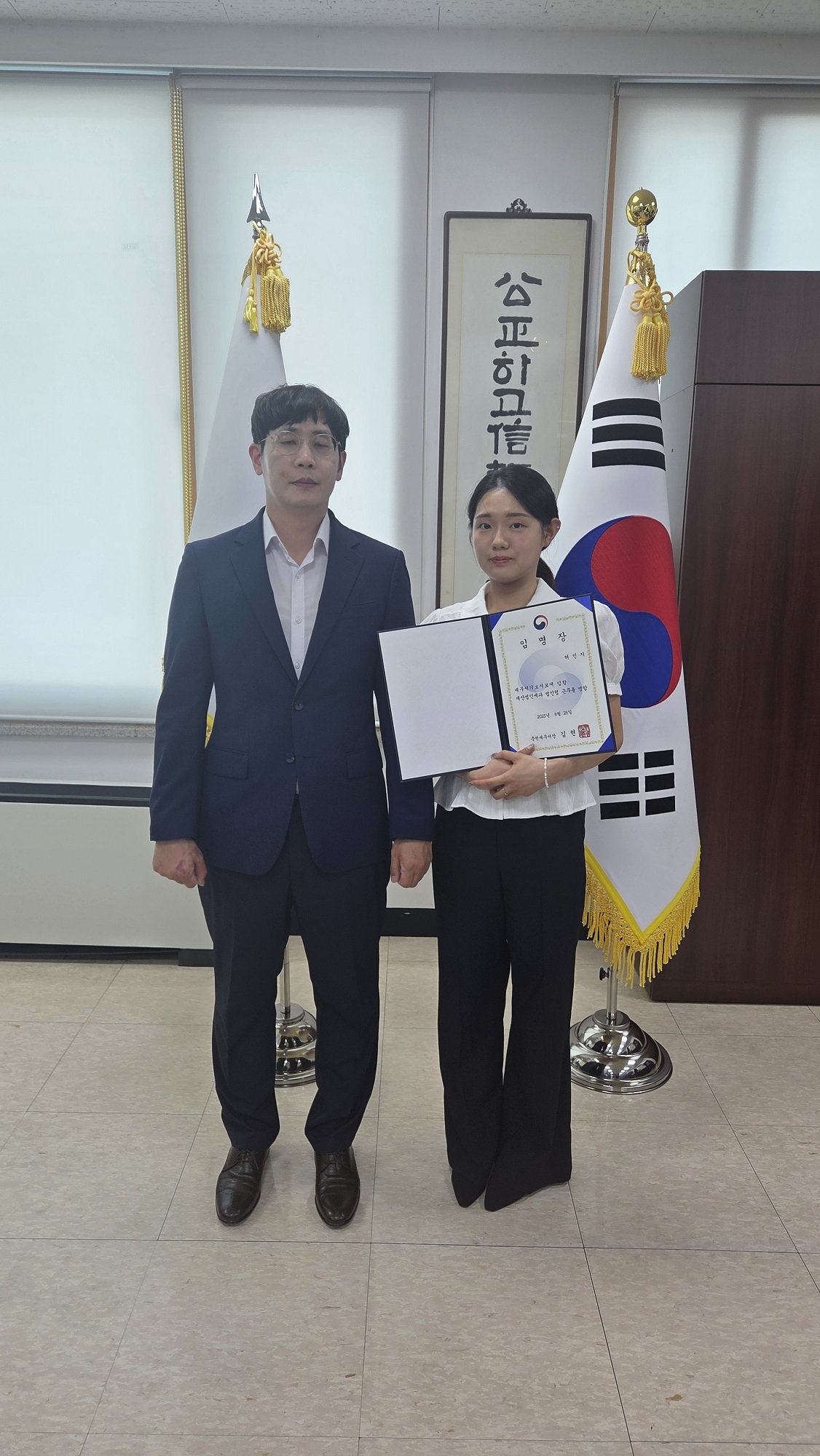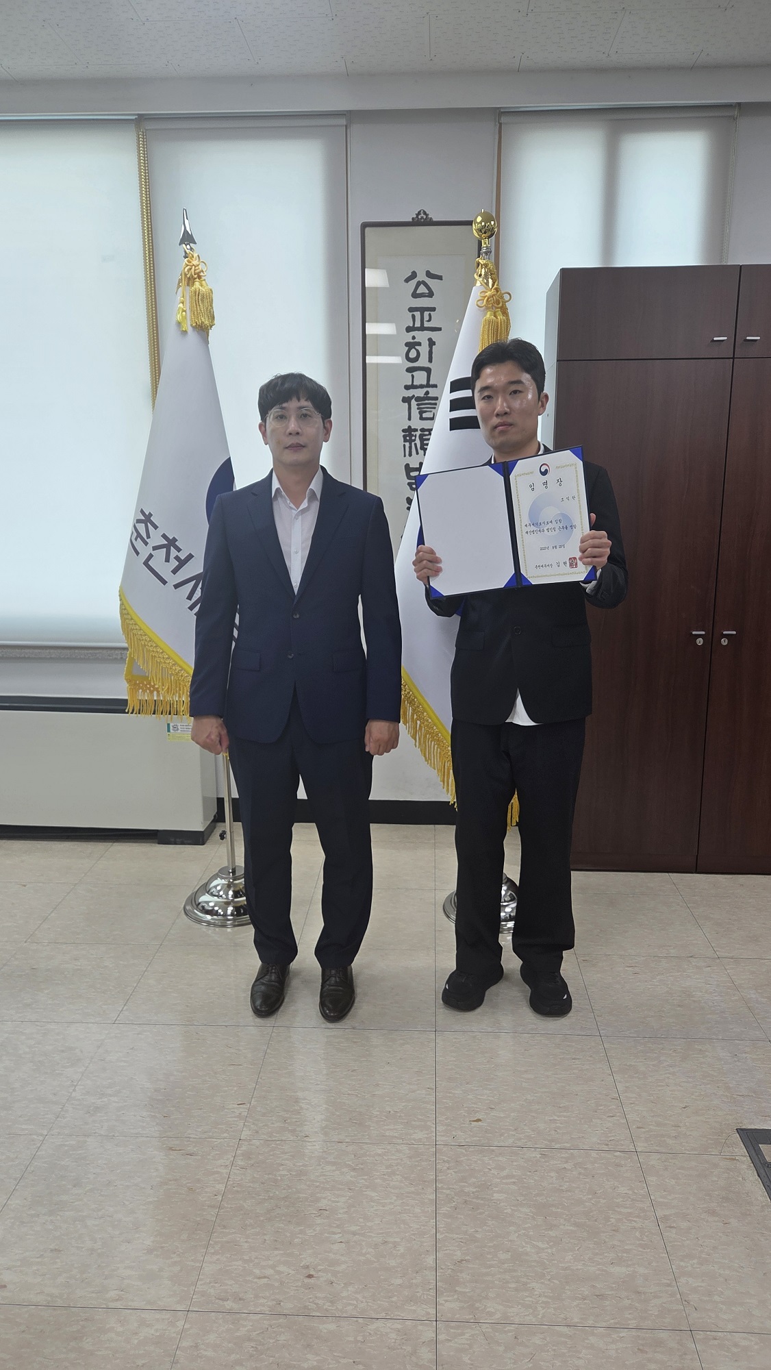 춘천세무서(서장 김현승)은 2025년 8월 26일(화) 오후 2시 30분 2층 서장실에서 8월 25일자 신규직원에 대한 인사발령 통지서 수여식을 진행하였습니다.
