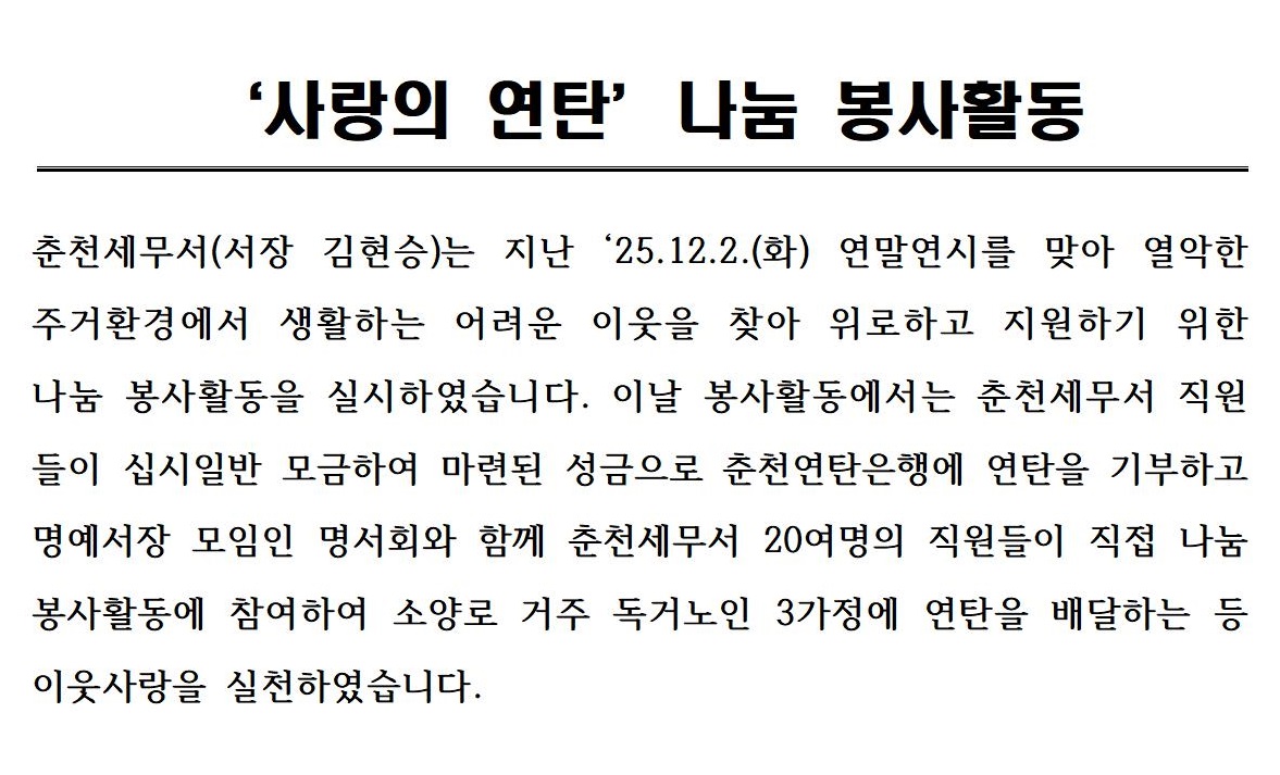 사랑의 연탄 나눔 봉사활동