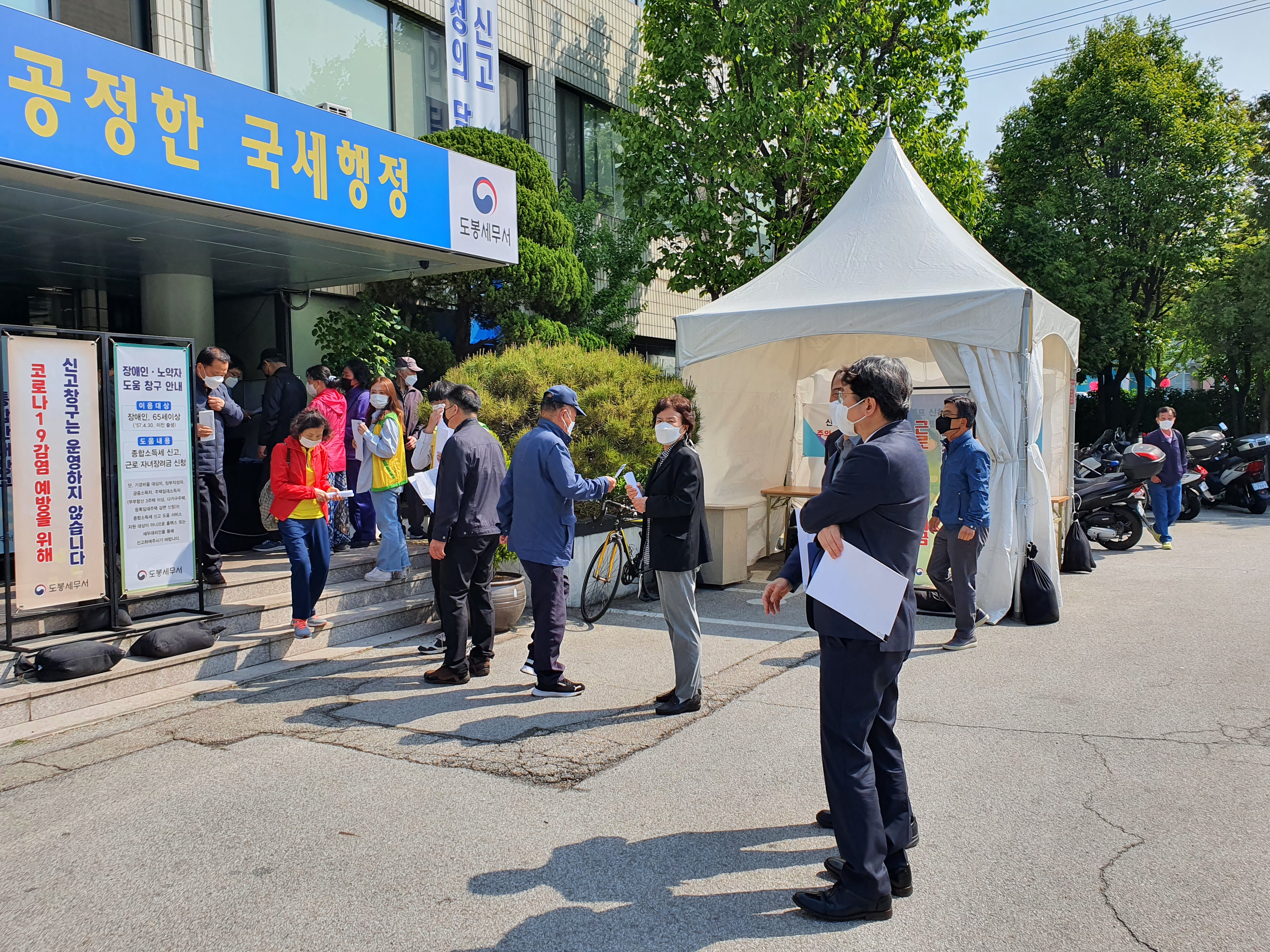 ○ 권순재 도봉세무서장은 5.3.(월) 서울청 간부회의를 마치고, 1층 대강당에 설치된 종합소득세 및 장려금 신고 신청 도움창구와