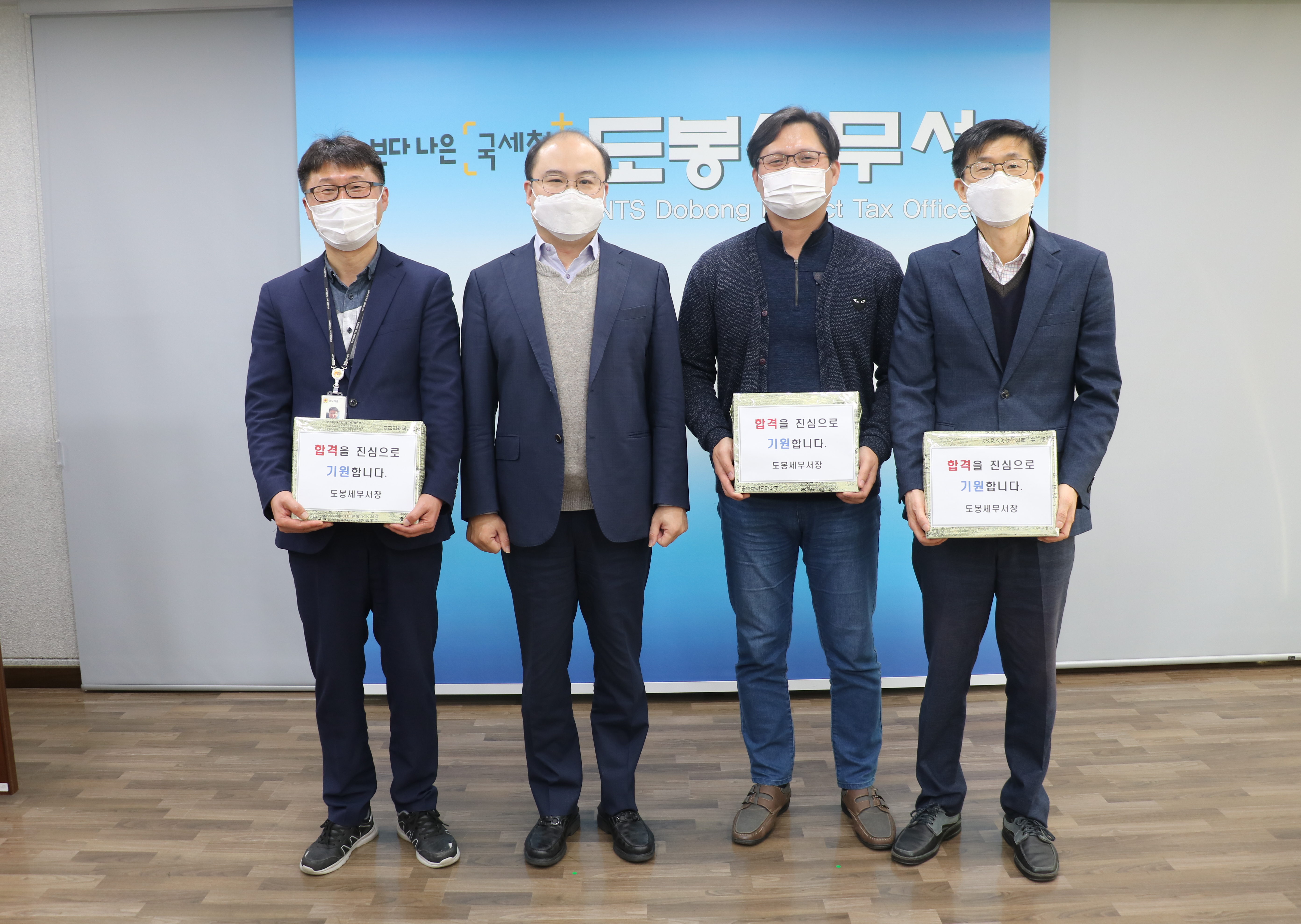 도봉세무서(서장 곽상민)는 2021년 11월 12일 도봉세무서 서장실에서 대학수학능력시험을 앞둔 자녀가 있는 직원들에게 수능 응원 물품을 전달하였습니다.