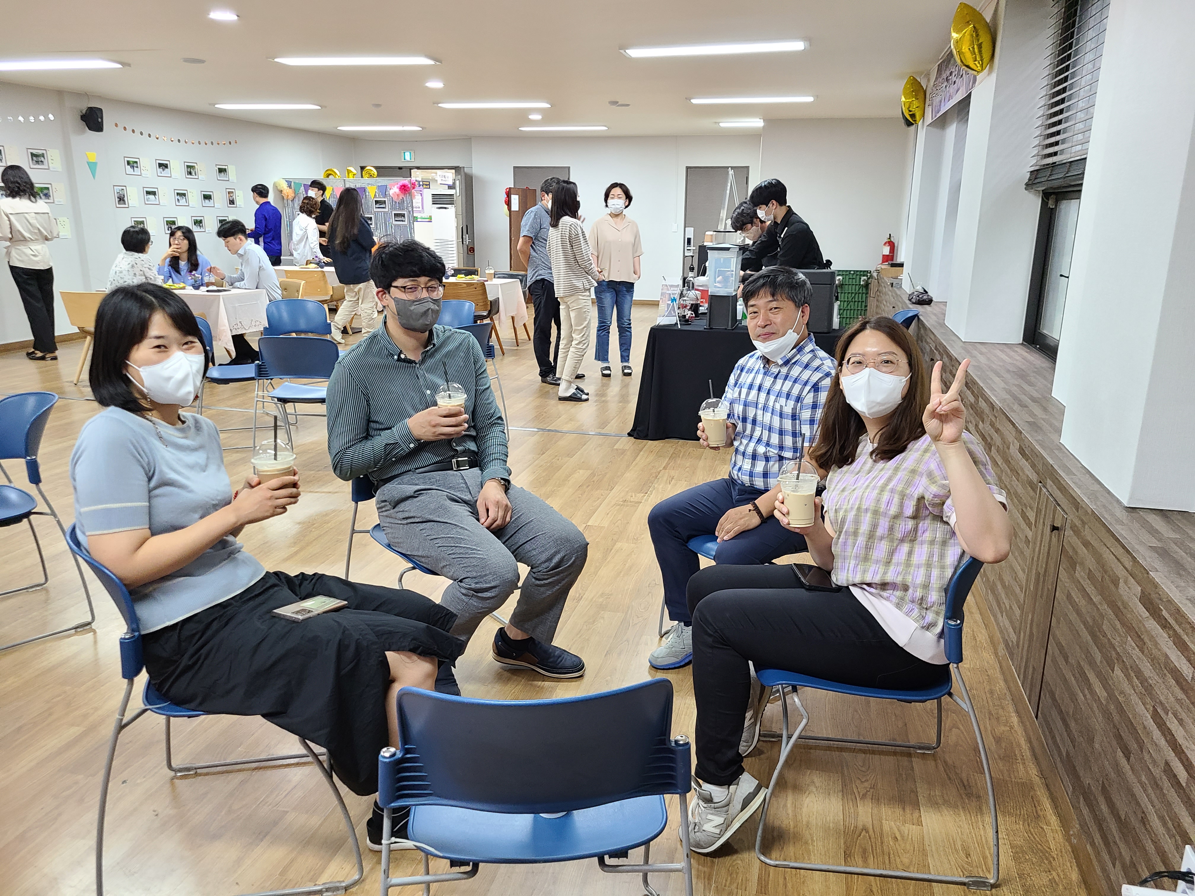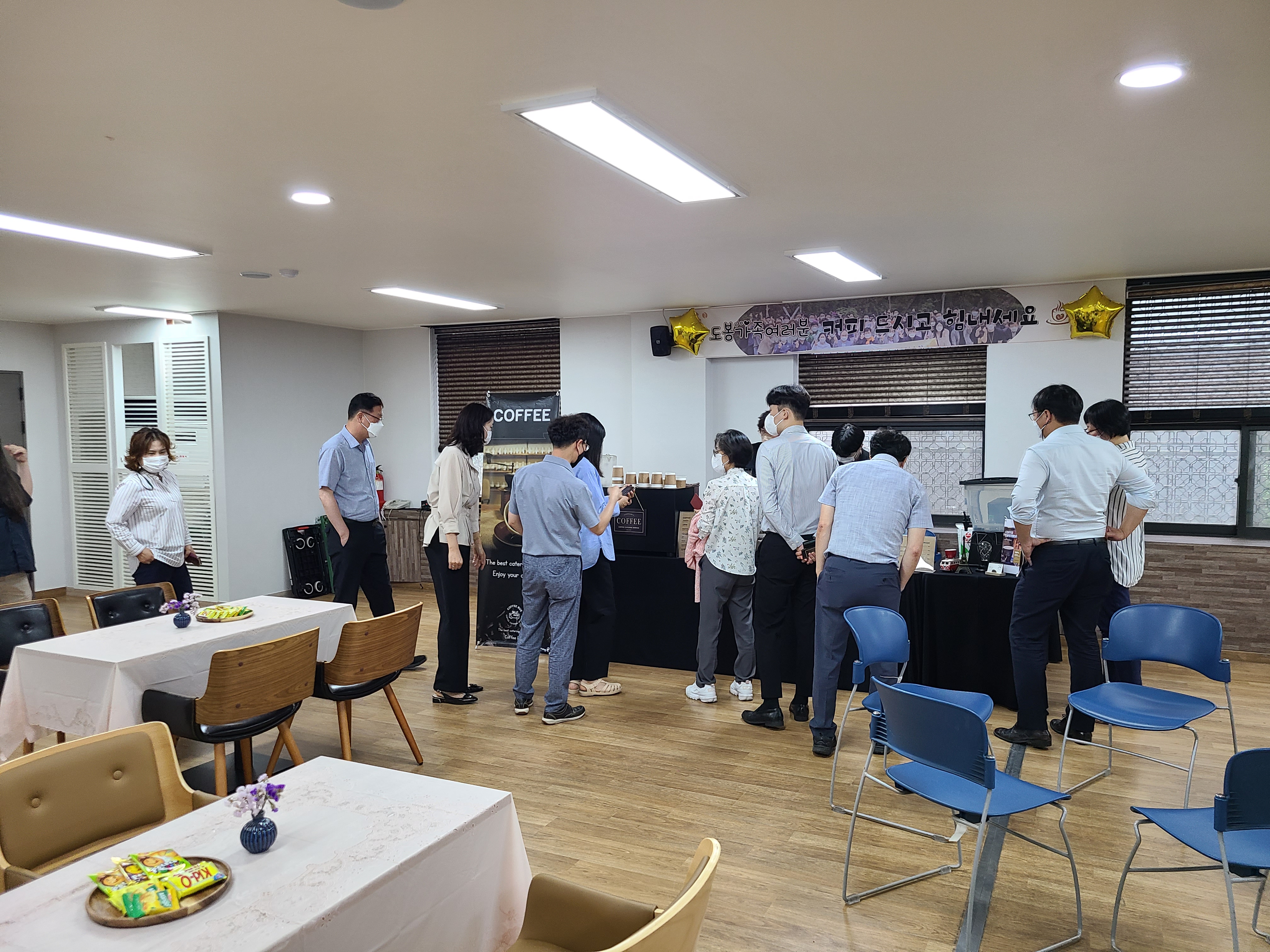 직원들은 마련된 자리에 앉아 제공받은 음료와 과자를 들며 짧은시간이나마