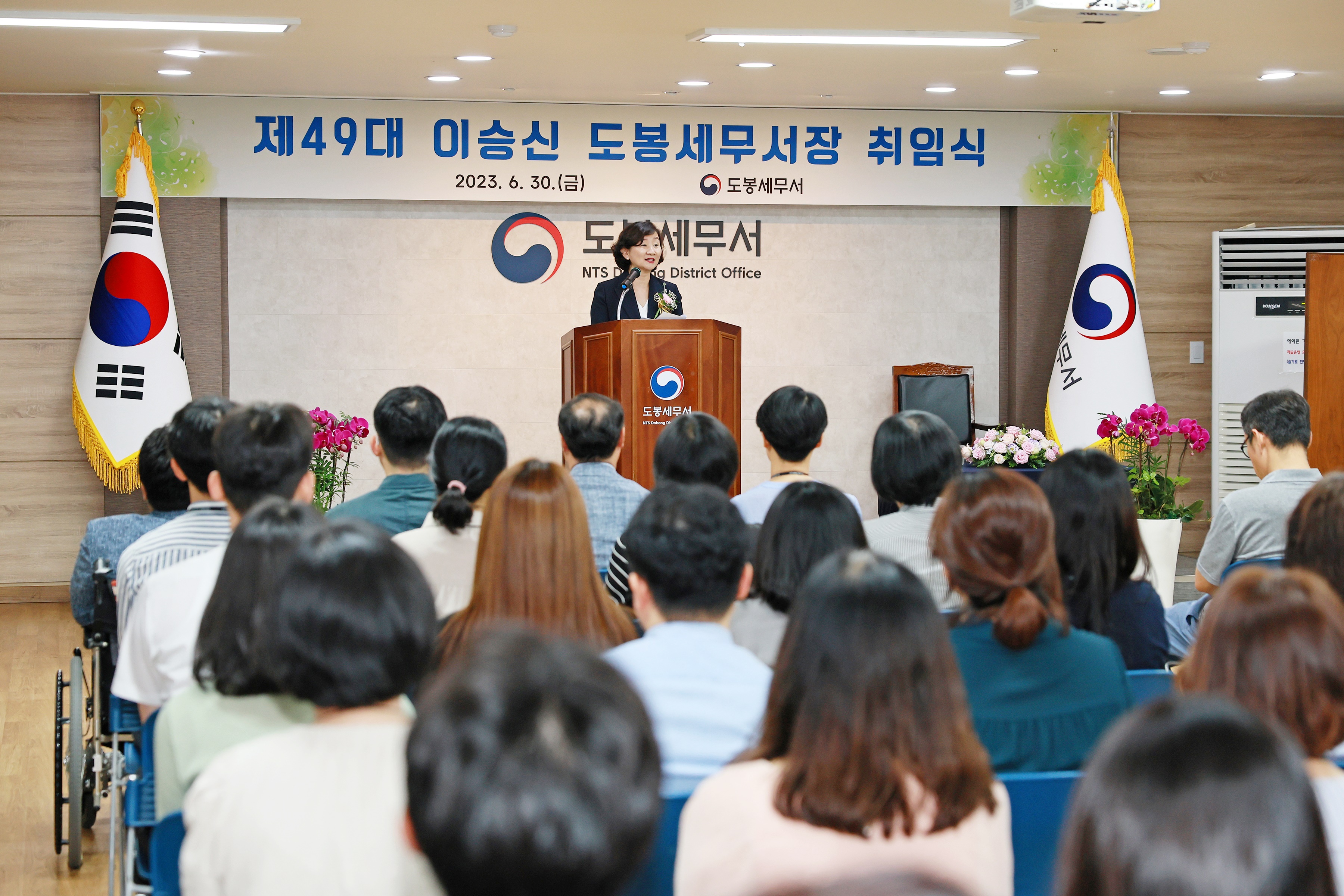 도봉세무서 대강당에서 2023년 6월 30일 (금)에 제49대 이승신 도봉세무서장의 취임식이 있었습니다.
