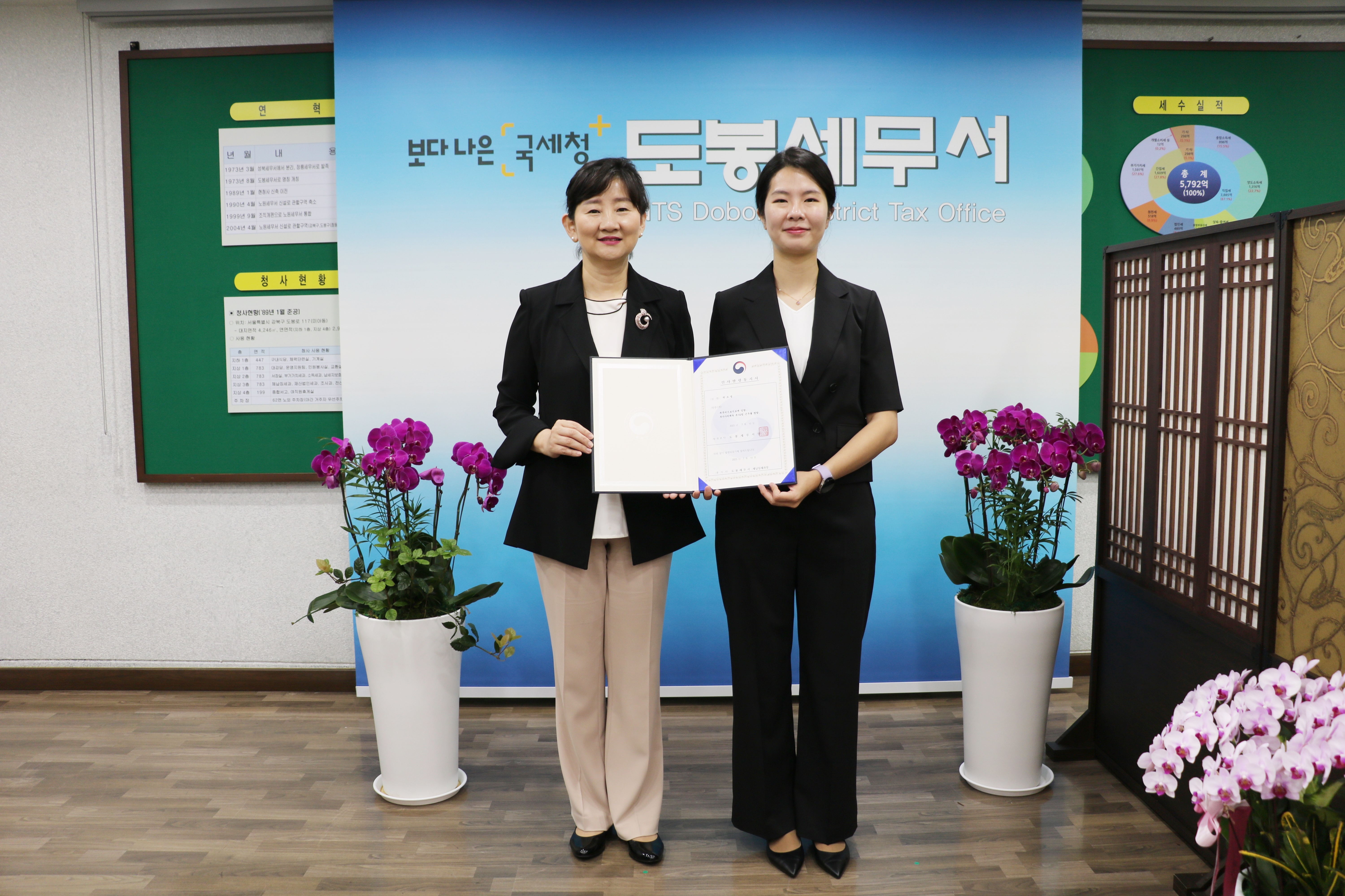 도봉세무서(서장 이승신)는 2023년 7월 10일(월) 신규임용직원 임용장 수여식을 진행하였습니다.