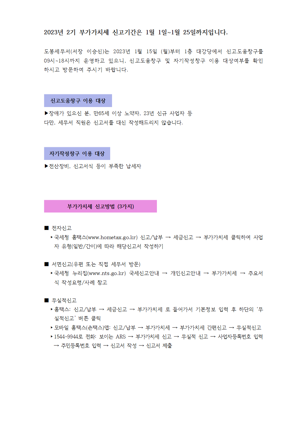 2023년 2기 부가가치세 확정 신고 안내