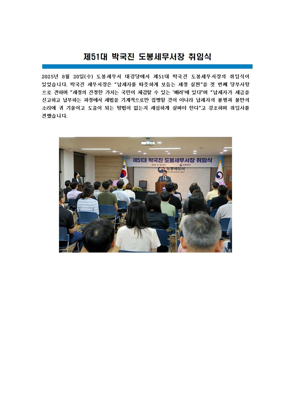 제51대 박국진 도봉세무서장 취임식