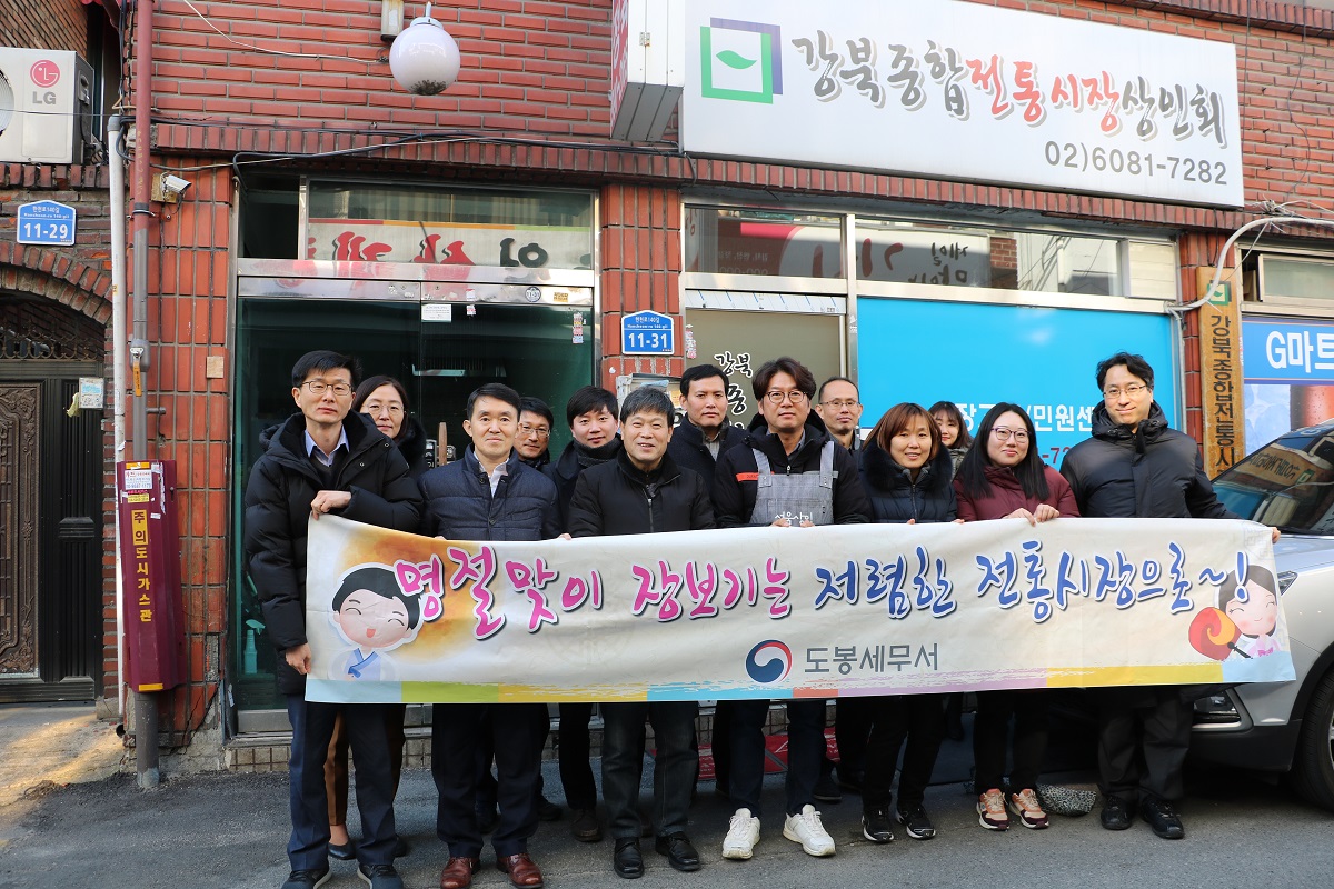 도봉세무서(서장 고현호)는 설날 명절을 맞아 2020년 1월 21일 직원들과 함께 강북구 수유동에 위치한 강북종합전통시장을 방문하였습니다.