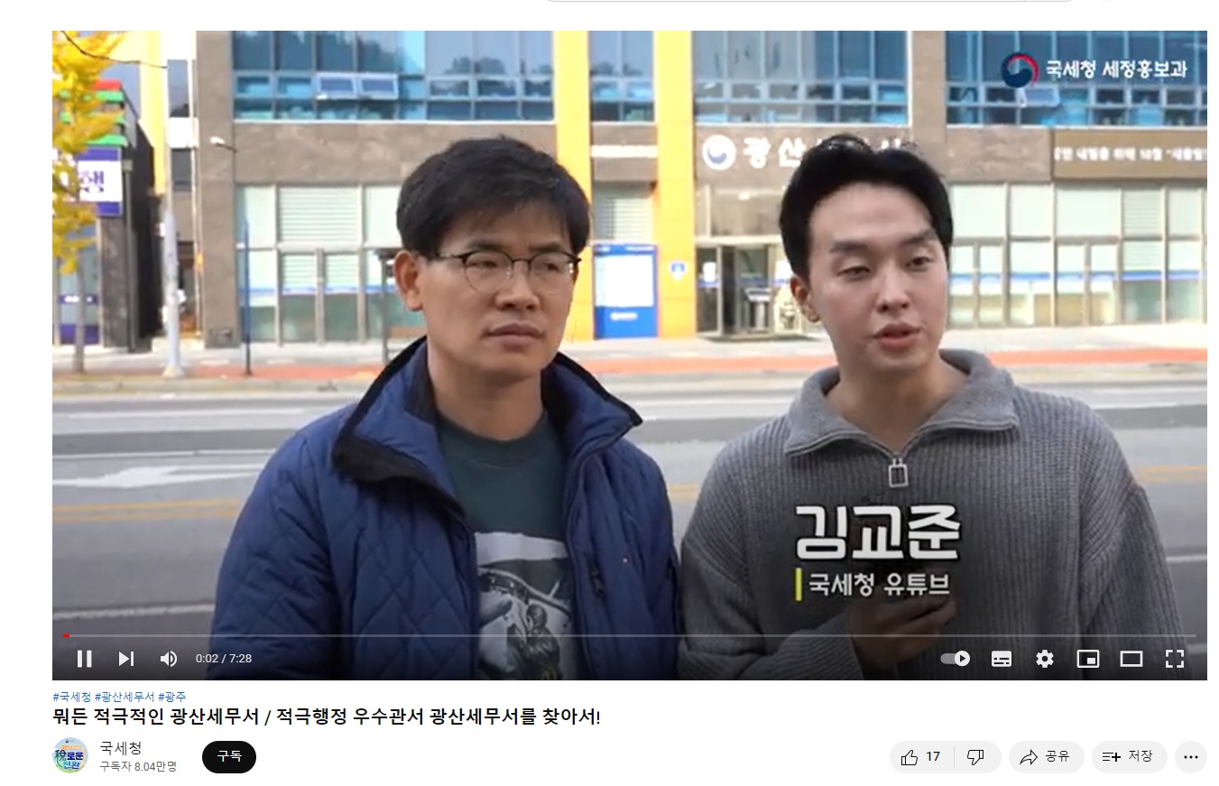 적극행정 우수관서로 광산세무서가 선정되었습니다!!!
