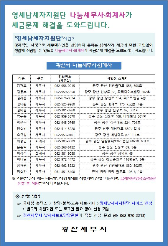 우리서 영세납세자지원단 「나눔세무사·회계사」 명단