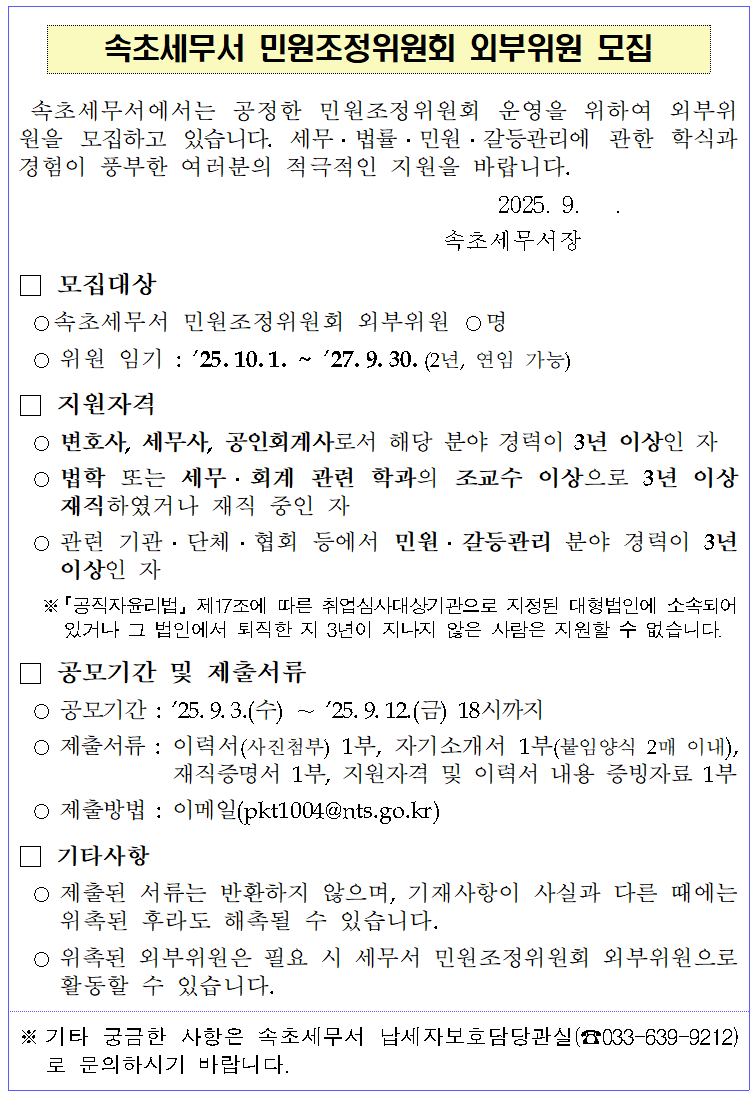 민원조정위원회 외부위원 공개모집 공고문.hwpx